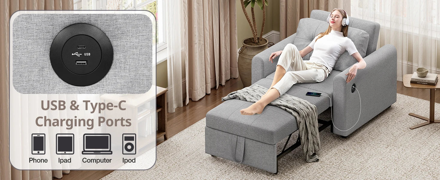 Features: USB charging port, Pull-out bed